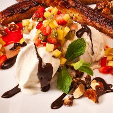Splitting into two fried banana and 1 teaspoon strawberry jam fill dibelahan banana